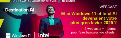 Découvrez notre série de webcast en 3 épisodes qui va vous aider à convaincre vos clients de moderniser leur parc avec les PC IA Windows 11 et Intel.